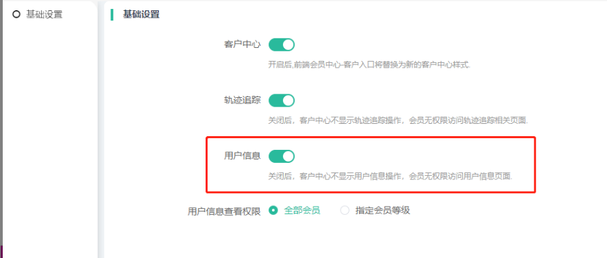(四)用户信息查看权限:全部会员、指定会员等级。